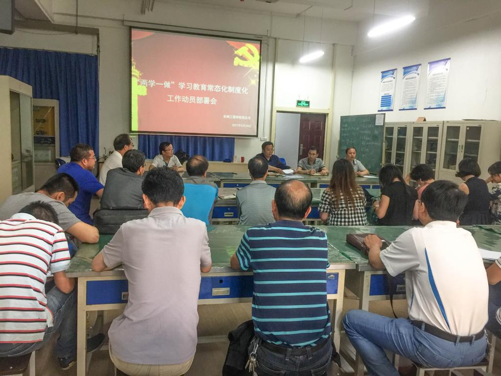 5月24日,机械工程学院党总支召开推进“两学一做”学习教育常态化制度化动员部署会,全体教师党员和部分学生党员代表参加了会议,会议由党总支书记乌军锋主持。