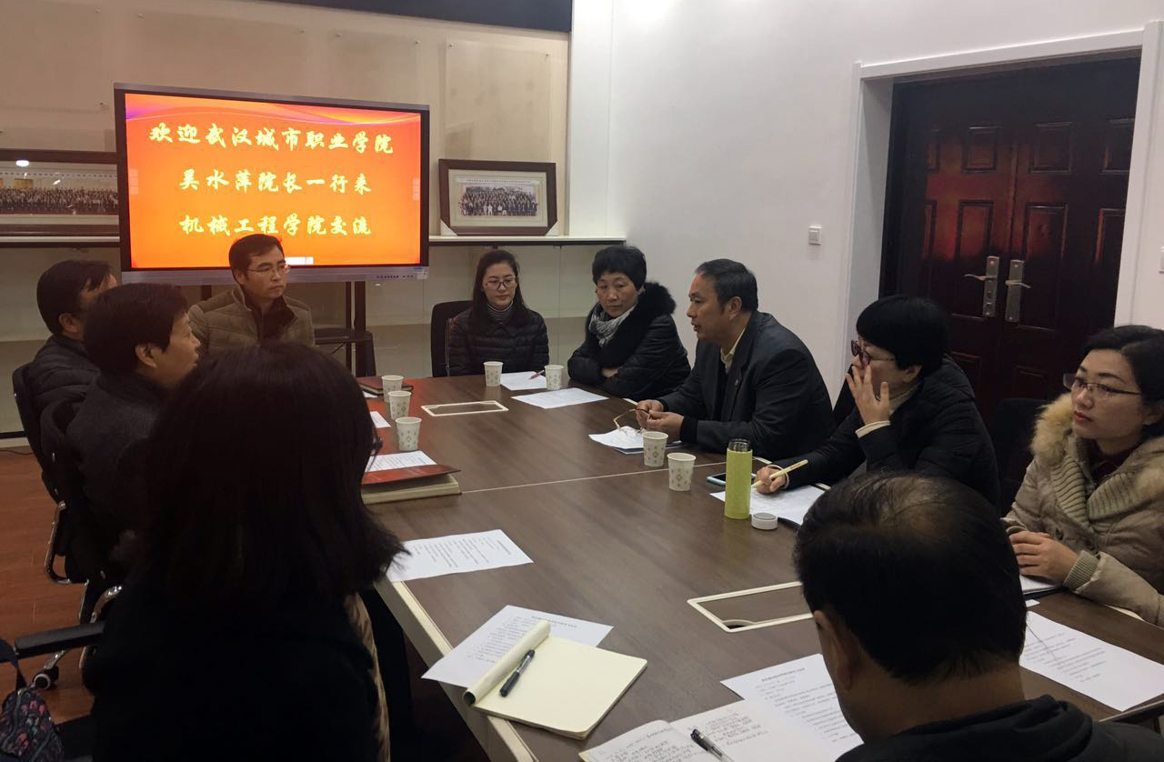 12月12日上午,武汉城市职业学院机电工程学院院长吴水萍一行6人来我院交流工作。我院机械工程学院院长田锋社,副院长胡建辉、苏宏志和机制教研室部分教师与来访同仁进行了座谈。