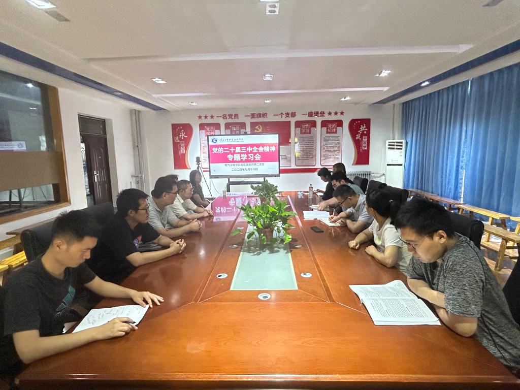 为深入学习贯彻党的二十届三中全会精神,9月18日下午,电气工程学院党总支教师第二党支部开展党的二十届三中全会精神专题学习会,全体党员参会,会议由支部书记张维主持。