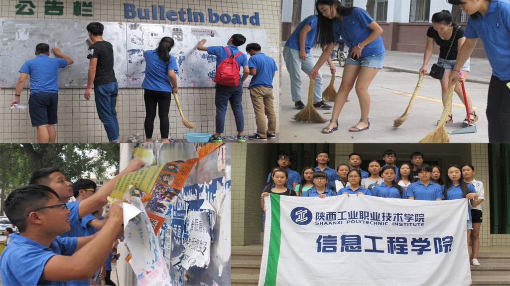 此次志愿劳动活动力争为学院营造“清洁、健康、卫生、和谐”的校园环境,在新生入学之际建立“励志、笃学、尚美”的校园形象,信息学子愿为学校发展献出自己微薄的力量,为我院有迎新扫清环境障碍。