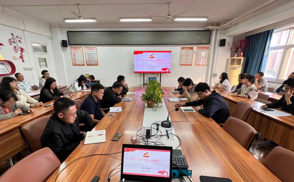 教育是强国建设、民族复兴之基。10月16日下午,汽车工程学院党总支于崇文楼A605会议室组织召开了学习习近平同志《论教育》专题学习会,活动由汽车工程学院党总支书记高亚宁主持,全体教师党员参加。
