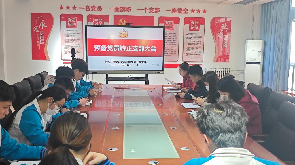 为进一步加强党员队伍建设,增强党组织生机与活力,3月31日,电气学院学生第一党支部在行知楼A506党员活动室召开预备党员转正大会。会议由电气学院学生第一党支部书记李小燕主持。