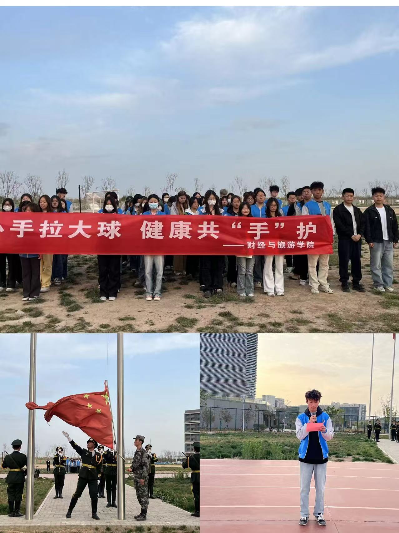 在第59个世界卫生日到来之际,4月7日早上,财经与旅游学院在学校操场组织开展“国旗下的成长”主题教育活动,本次活动的主题是“小手拉大球,健康共“手”护”。财经与旅游学院辅导员高壮壮老师、2024级学生代表参加了此次活动。