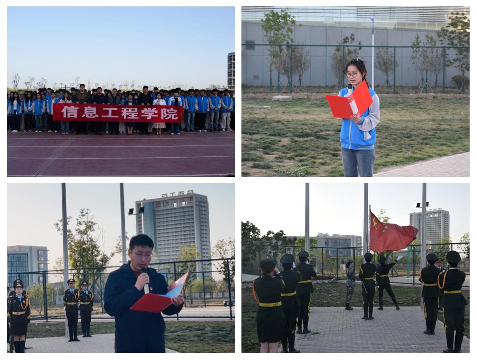 为增强师生国家安全意识,筑牢校园安全防线,在第十个全民国家安全教育日来临之际,信息学院于4月14日清晨隆重举行“维护国家安全,共筑强国之基”主题升旗仪式。信息学院党总支书记王伟、党总支副书记郭新玲、学工办主任赵松、辅导员代表及学生代表200余人参加。