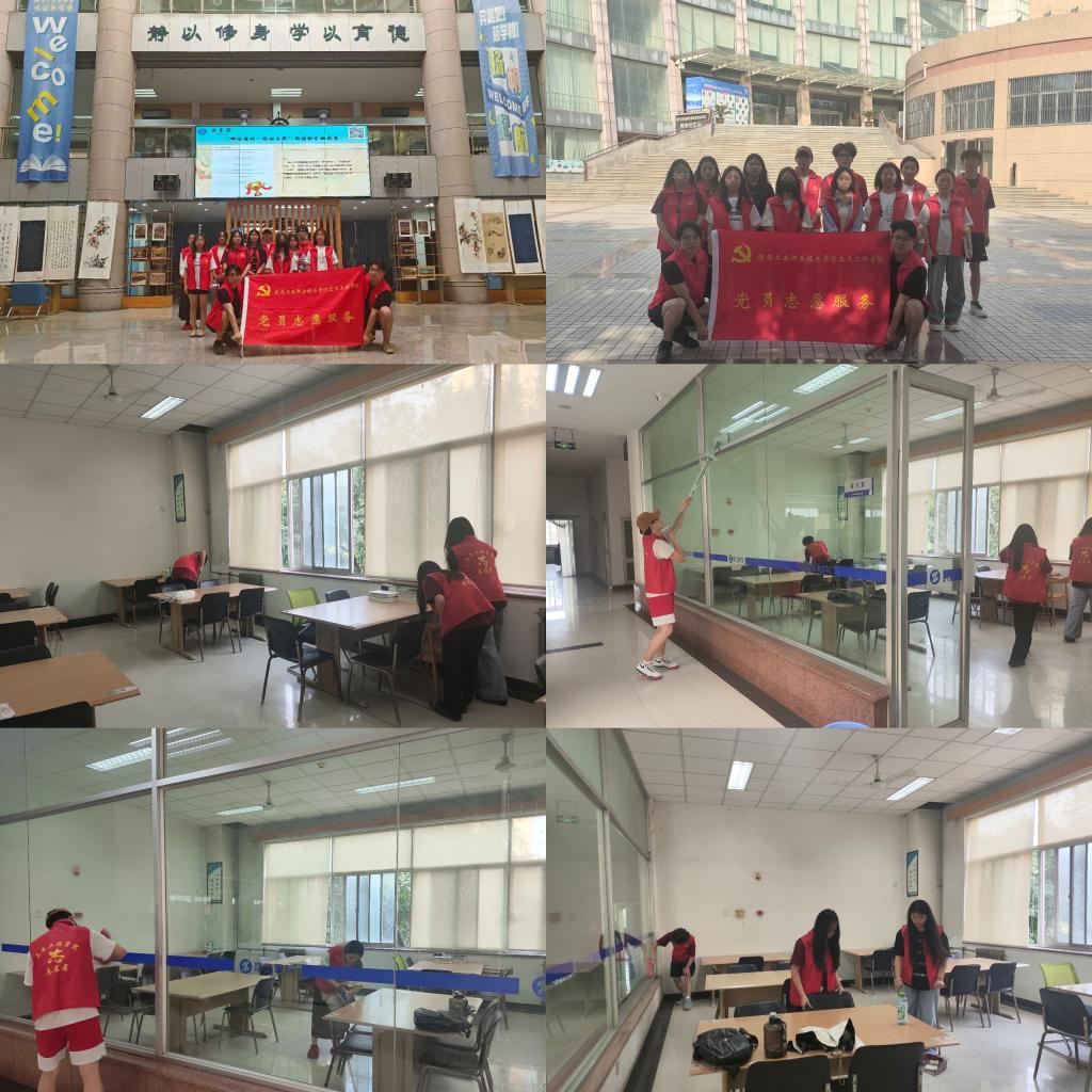 活动现场,志愿者们身披统一标识的马甲,按照任务分工,有序组成玻璃清洁、桌椅擦拭、地面清扫三个小组,在图书馆老师的指导下迅速投入工作。在静谧的阅览区内,志愿者们手持抹布、扫帚等清洁工具,以一丝不苟的态度擦拭玻璃隔断,不放过任何污渍,力求玻璃表面光洁透亮。对于桌角、椅背等容易积灰的角落,他们反复清理,确保每一处细节都干净整洁。在地面清扫环节,志愿者们采用“地毯式”清扫方式,重点对书桌底部、墙角缝隙等卫生死角进行彻底清理,让地面纤尘不染。经过一个小时的辛勤劳动,图书馆阅览区面貌焕然一新,为师生打造出更加明亮舒适的学习环境。