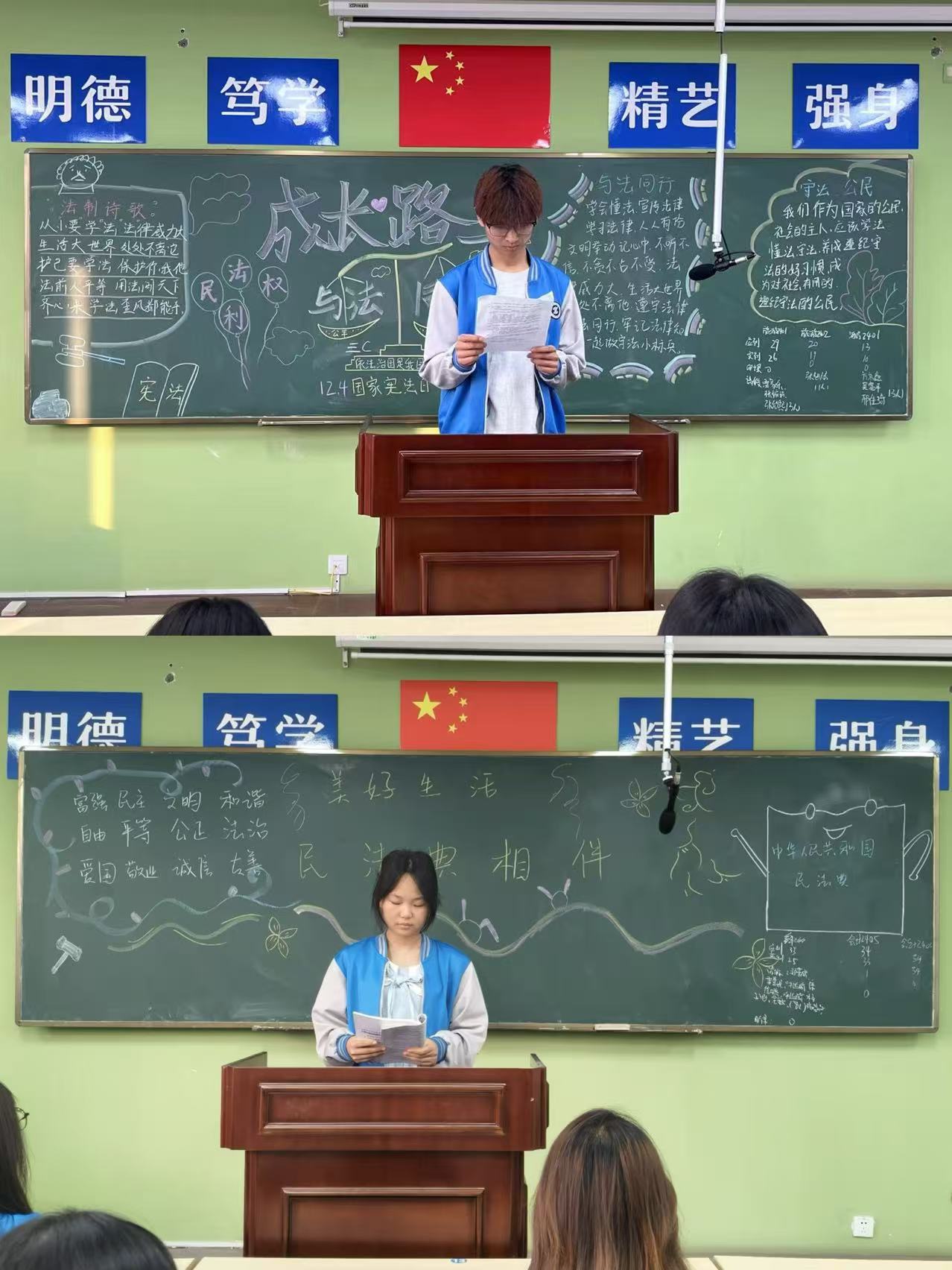 班会伊始,主持人通过精心准备的PPT,向同学们详细介绍了《民法典》的编纂历程、重大意义和基本框架。《民法典》作为新中国第一部以法典命名的法律,被誉为“社会生活的百科全书”,与每个人的生活息息相关。从胎儿的权益保护到成年后的民事行为能力,从婚姻家庭到财产继承,主持人结合生活中的实际案例,深入浅出地讲解了民法典中物权、合同、人格权、婚姻家庭、继承、侵权责任等各个分编的重要内容,让同学们对民法典有了初步的认识和理解。
