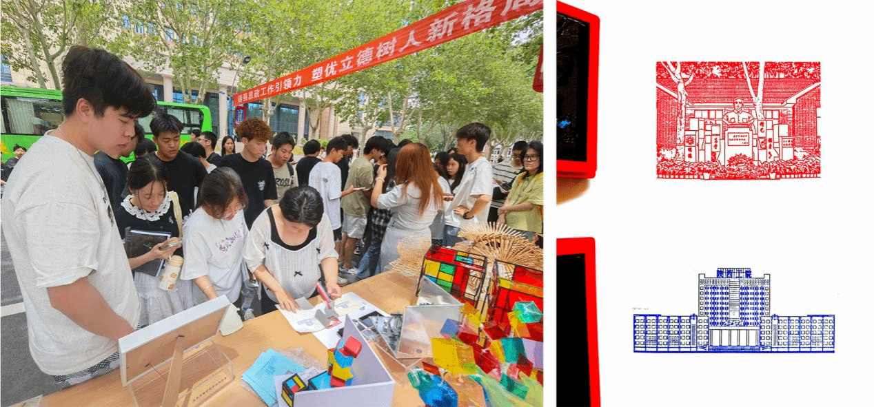 展览现场还设置了互动体验区,广大师生前来观展即可参与“打卡集章”活动。在欣赏作品的同时收集独具特色的陕工院文创印章,既增添了观展趣味性,又让学校红色匠心文化以更生动的方式深入人心。