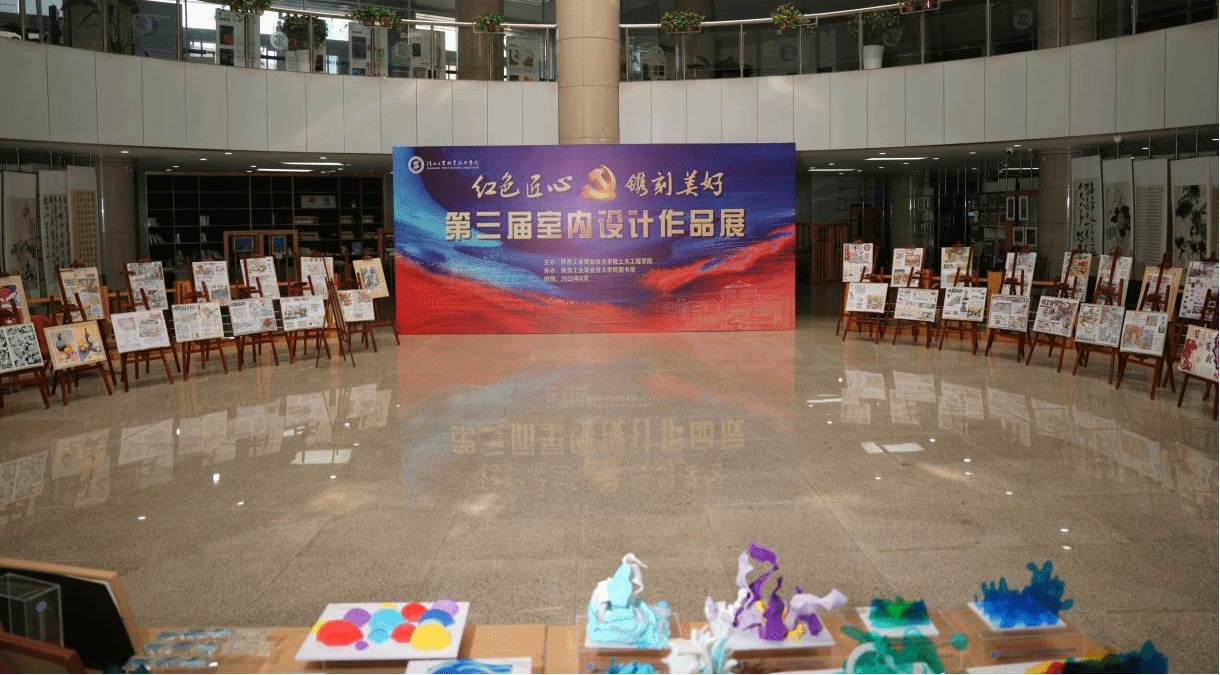 为充分展示专业教学成果,提升学生实践技能,推动艺术与技术的深度融合,土木学院于2025年6月16日到6月20日在图书馆一楼大厅及校园成才大道举办“红色匠心 镌刻美好”第三届室内设计作品展。