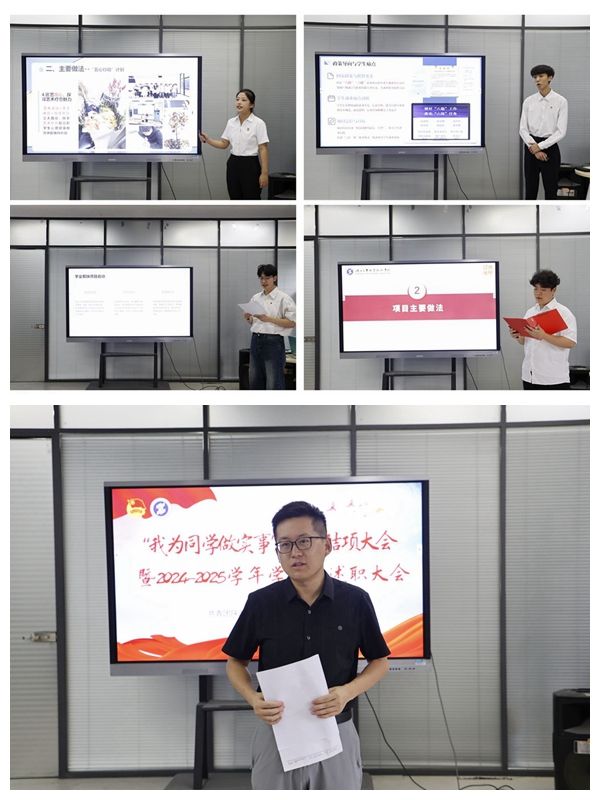 为深入学习贯彻习近平总书记关于青年工作的重要思想,持续深化我校学生会组织改革,树牢“全心全意为同学服务”的宗旨,带动各二级学院学生会组织持续聚焦同学急难愁盼问题,努力建设富有理想、关心同学、清新阳光的学生会组织形象。6月19日下午,校团委在渭城校区大学生创新创业中心举行2024年“我为同学做实事”项目结项大会暨2024-2025学年学生会述职大会。校团委书记薛媚、学生处教育管理科科长赵盼盼、校学生会指导教师张海担任评委,各二级学院团总支书记、学生会指导教师及全校各级学生会代表参加本次活动。