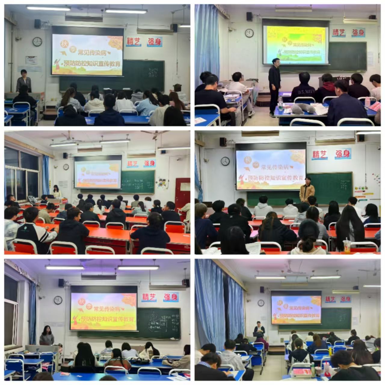 班会伊始,各班班主任结合近期安全案例与秋季传染病流行特点,以“安全+健康”双维度展开讲解。在假期安全板块,重点强调了交通安全、居家用电用火安全、网络诈骗防范及外出旅行安全,通过播放典型事故视频、剖析诈骗话术等方式,让学生直观认识到危险隐患。在秋季传染病预防环节,班主任围绕流感、诺如病毒感染性腹泻、肺结核等高发传染病,详细讲解了传播途径、典型症状及科学预防方法,全方位、多层次宣传普及肺结核、流感、艾滋病、出血热、诺如病毒感染性腹泻等重点传染病防护知识。