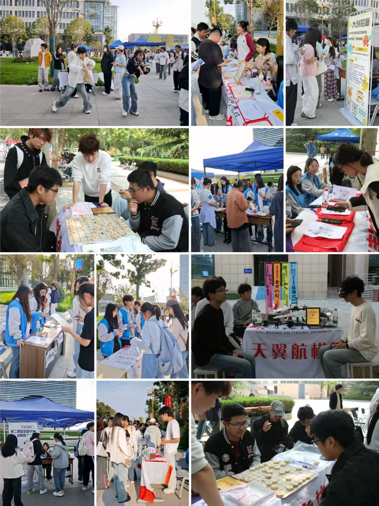 活动当日,纳新现场彩旗飘扬,人声鼎沸。校学生会、学生社团、青年志愿者协会、大学生艺术团、新媒体中心等十余个校级学生组织以及数十个特色社团早早布置好了各自的展位,并结合自身特色,通过精美的展板、生动的宣传册、动态的才艺展示以及有趣的互动游戏,全方位、多角度地向新生们展示组织文化、品牌活动与独特魅力。