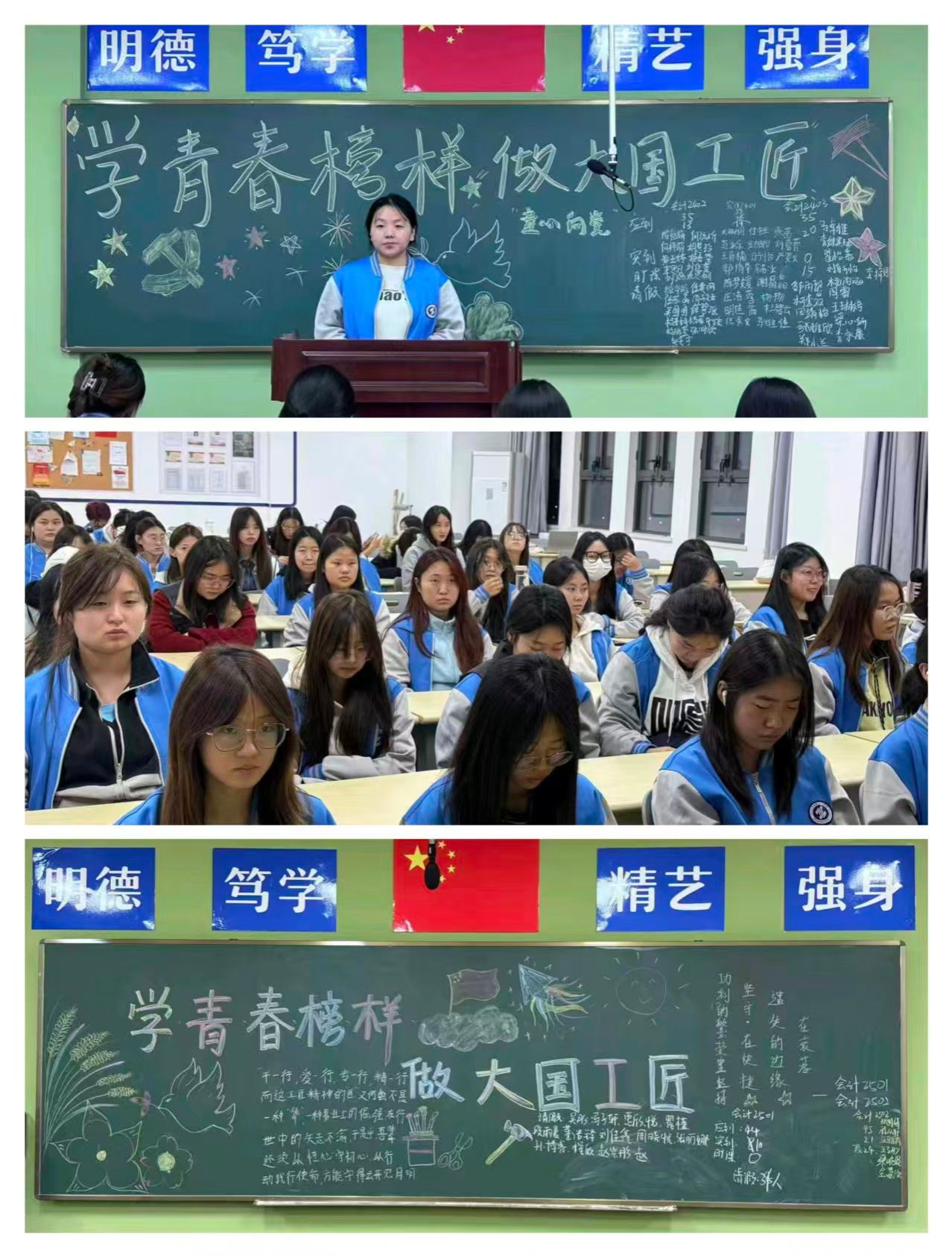 10月22日晚自习期间,财经与旅游学院各团支部集中开展“学青春榜样,做大国工匠”主题团日活动,学院2024、2025级全体学生参与,通过榜样学习、专业实践、分享交流的形式,引导青年学生在对标先进中涵养工匠精神。