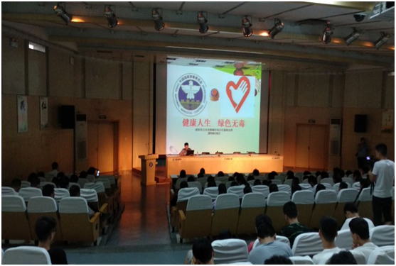 讲座中,赵教导员通过详实的案例、照片、视频帮助学生增强毒品的认识,使学生们了解什么是毒品,毒品的危害有哪些,如何远离毒患;为学生们讲解了国际禁毒日的由来,帮助学生树立正确对待毒品的观念。