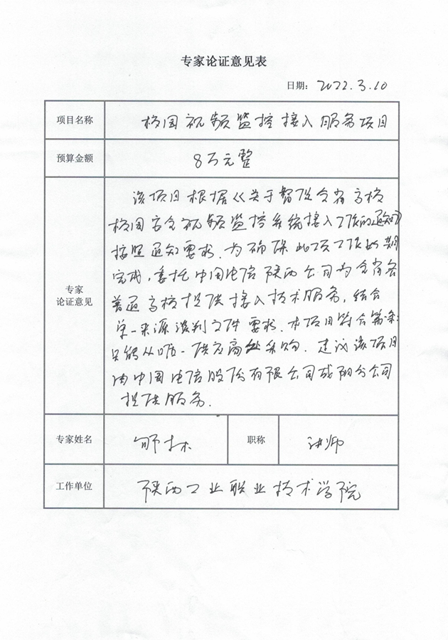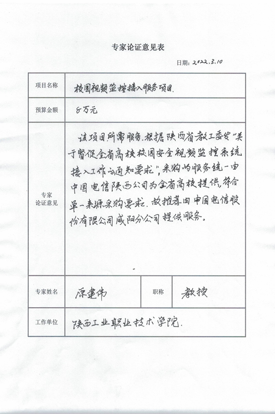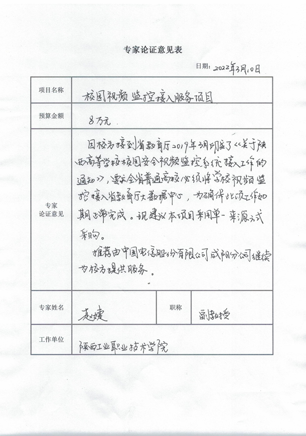 根据《关于督促全省高校校园安全视频监控系统接入工作的通知》及相关专家论证意见,星空web版登录入口校园视频监控接入服务项目拟采用单一来源采购方式,该项目拟由中国电信股份有限公司咸阳分公司承担。现将有关情况向潜在的供应商广泛征求意见。征求意见期限从2022年3月10日起至2022年3月17日止。