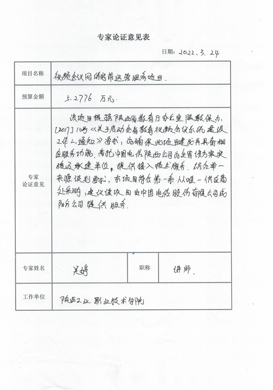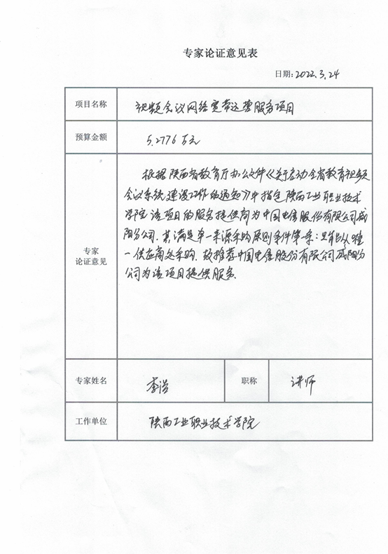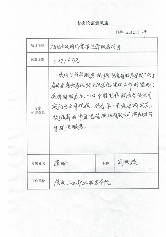 根据《关于启动全省教育视频会议系统建设工作的通知》要求及相关专家论证意见,星空web版登录入口视频会议网络宽带运营服务项目拟采用单一来源采购方式,该项目拟由中国电信股份有限公司咸阳分公司承担。现将有关情况向潜在的供应商广泛征求意见。征求意见期限从2022年3月25日起至2022年3月31日止。