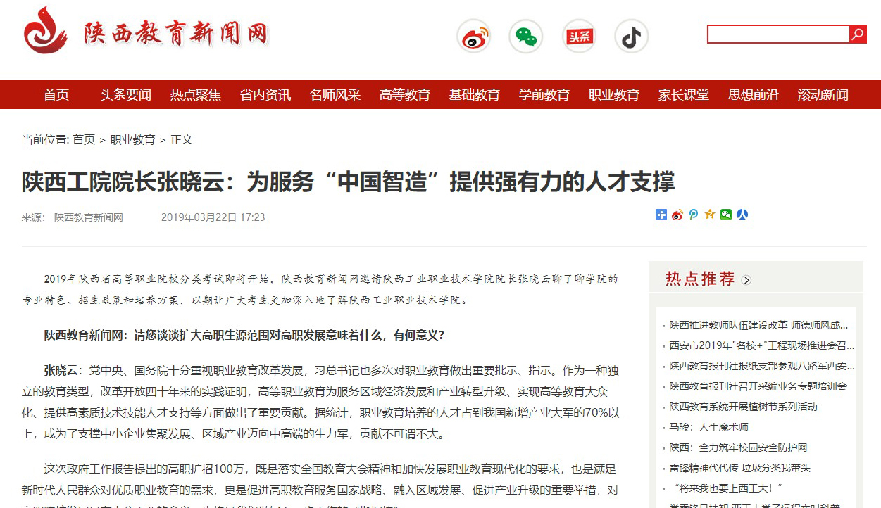 陕西教育星空(中国)网:在这个温暖的春天,陕西工院如何搭上这趟职教大发展的“春天的地铁”,请谈谈学院未来的发展与打算。