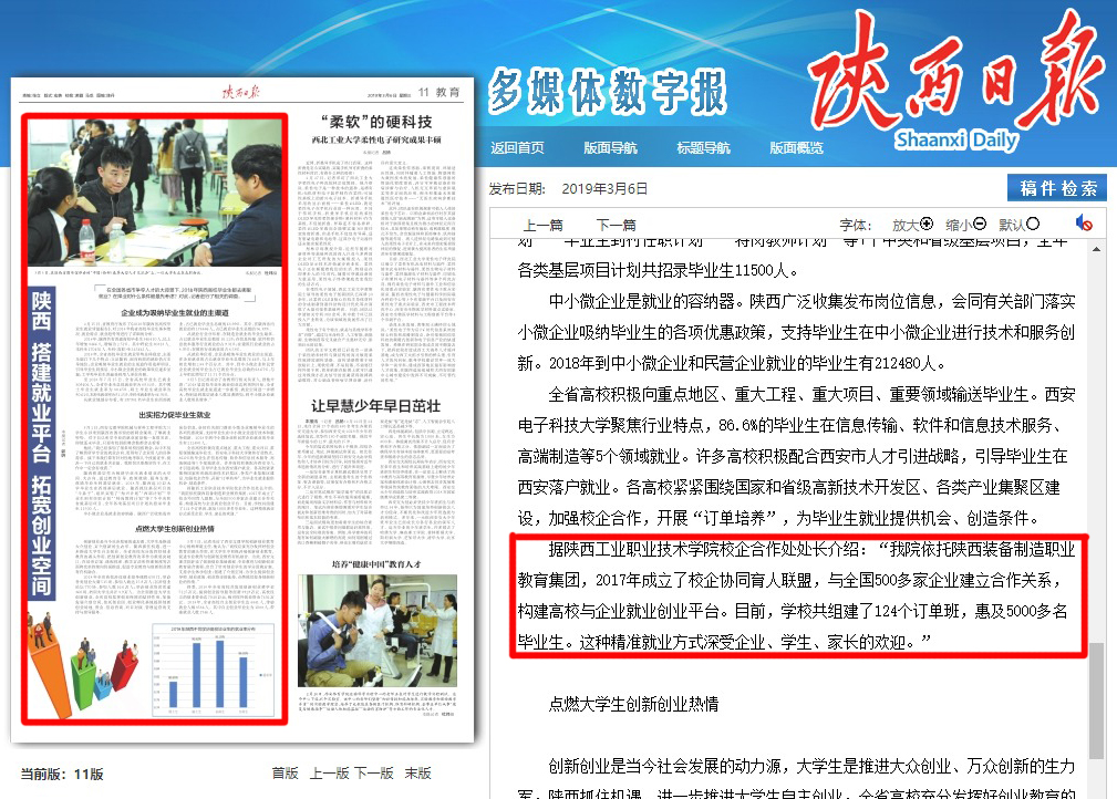 据星空web版登录入口校企合作处处长介绍:“我院依托陕西装备制造职业教育集团,2017年成立了校企协同育人联盟,与全国500多家企业建立合作关系,构建高校与企业就业创业平台。目前,学校共组建了124个订单班,惠及5000多名毕业生。这种精准就业方式深受企业、学生、家长的欢迎。”