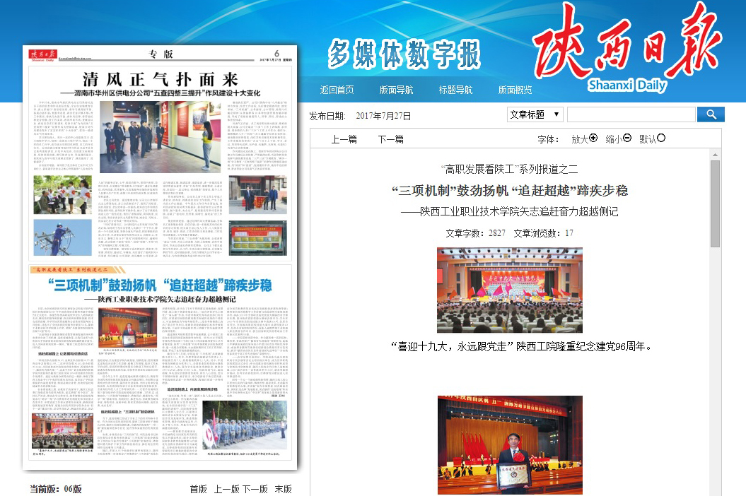 7月27日,《陕西日报》刊发“高职发展看陕工”系列报道的第二篇,以《“三项机制”鼓劲扬帆,“追赶超越”蹄疾步稳——星空web版登录入口矢志追赶奋力超越侧记》为题专版聚焦我院贯彻落实追赶超越、三项机制要求,实现学院跨越式发展的成就。全文如下: