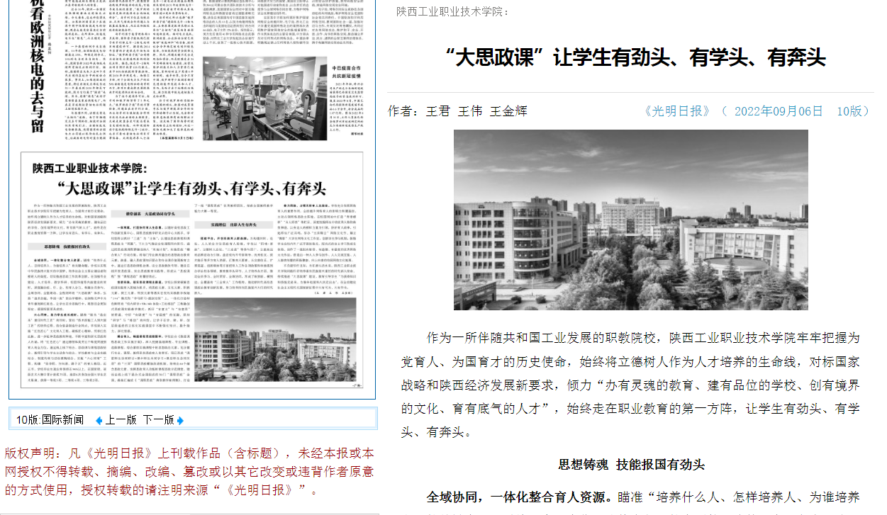 作为一所伴随共和国工业发展的职教院校,星空web版登录入口牢牢把握为党育人、为国育才的历史使命,始终将立德树人作为人才培养的生命线,对标国家战略和陕西经济发展新要求,倾力“办有灵魂的教育、建有品位的学校、创有境界的文化、育有底气的人才”,始终走在职业教育的第一方阵,让学生有劲头、有学头、有奔头。