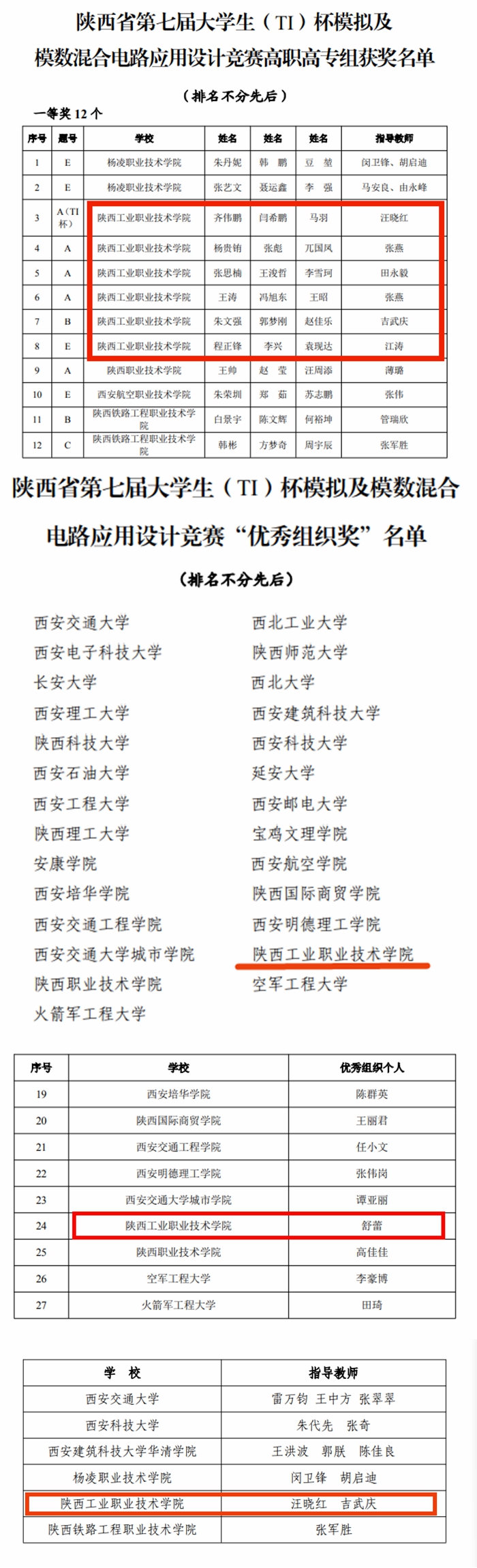 本次竞赛由陕西省教育厅主办,西安电子科技大学承办,全省共有56所高校823支队伍参赛,下设本科组和高职高专组,各组第一名授予“TI”杯荣誉。
