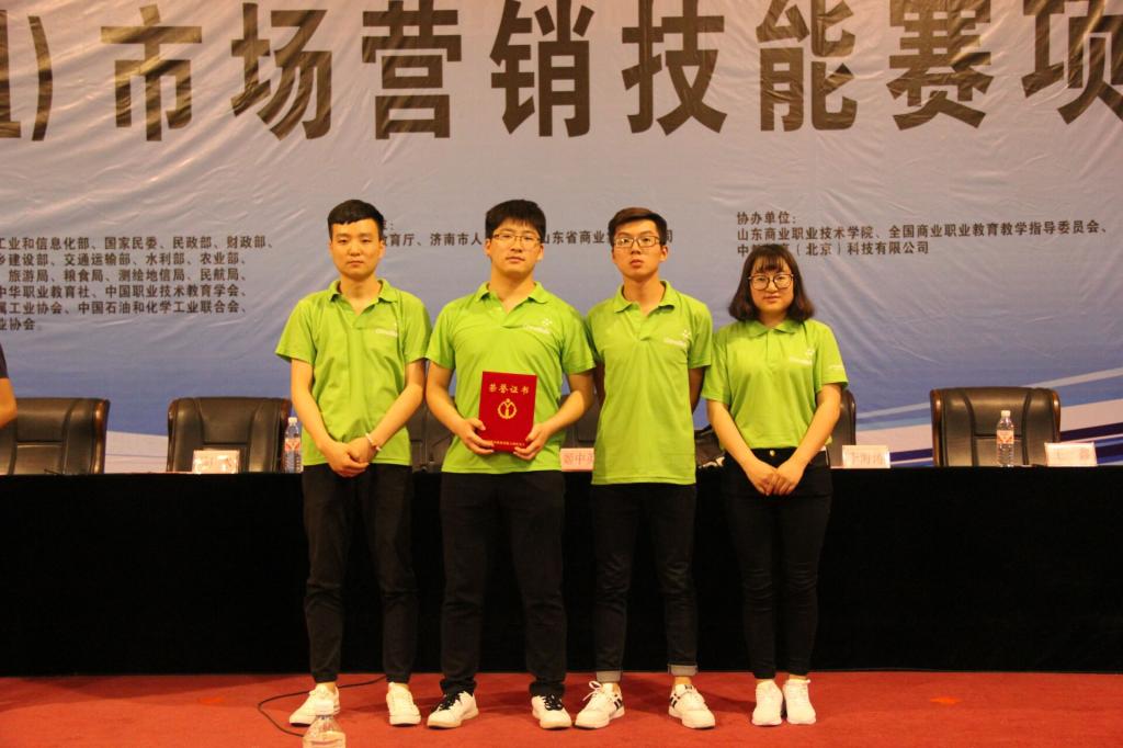 在为期两天的比赛过程中,选手们经过“商务数据分析、营销实战展示、情景营销”三个部分的激烈角逐,最终由物流管理学院张庆、颜伟指导的市场营销专业策划1501班姜欢、连锁经营管理专业连锁1501班李显、李煜坤、连锁1502班赵海娟四位同学组成的参赛队脱颖而出,获得团体三等奖。