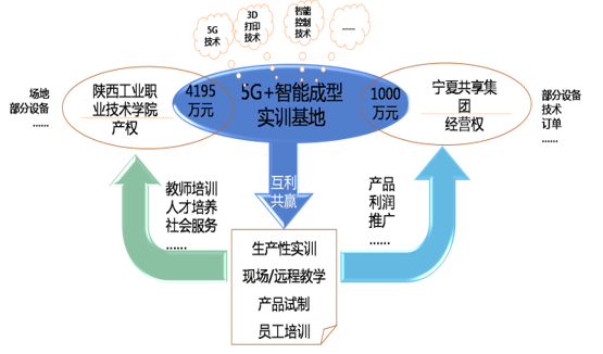 风险共担利益共享,联合龙头企业共建实训基地。与国家级高新技术企业宁夏共享集团进行深度合作,校企共同规划、投资、建设了“5G+智能成型”产教融合生产性实训基地,实验室建成后由宁夏共享负责基地的产业化运营,同时承担理实一体化教学、生产现场远程教学、企业员工培训和企业产品试制等任务,双方风险共担、利润共享,实现了校企深度合作。