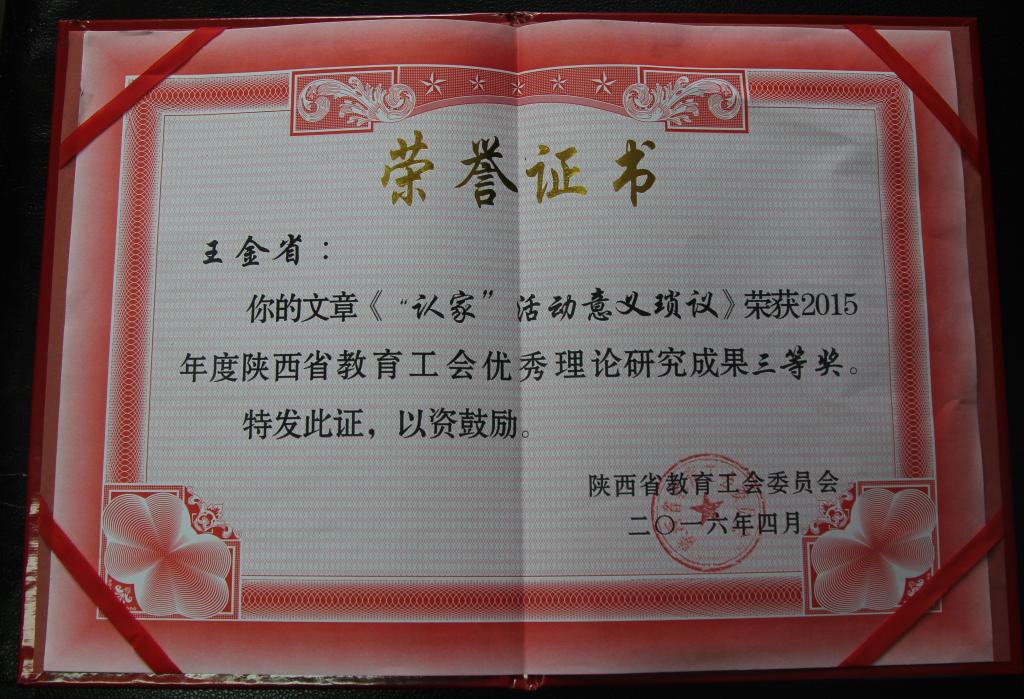 4月14日,陕西省教育工会理论研究和调查研究工作会议在临潼召开。会议交流了工运理论研究经验,通报了2015年度工会理论研究和调查研究获奖成果。我院工会刘文青、王金省两位老师获优秀理论研究成果三等奖;工会主席刘文青出席会议并代表学院领奖。