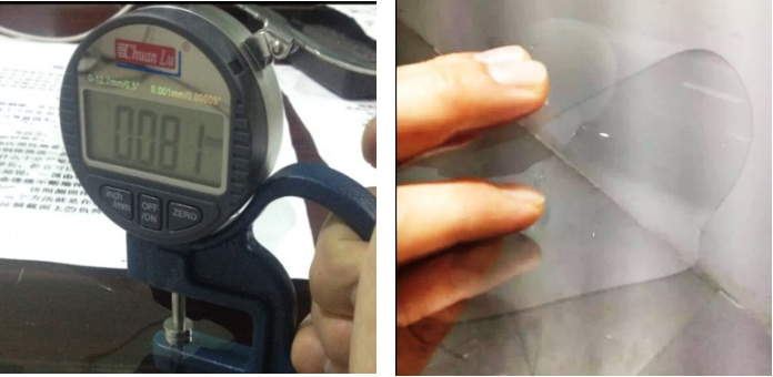 图1 团队成员开发出厚度为0.08mm的柔性玻璃样品