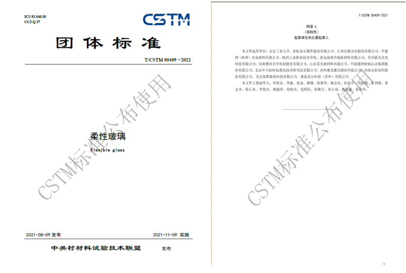 图4 学校作为主要负责起草单位的“柔性玻璃技术标准”由中关村材料试验技术联盟正式发布