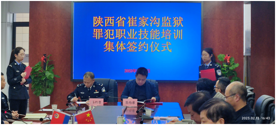 2月13日下午,副校长段峻一行参加陕西省崔家沟监狱职业技能培训集体签约仪式。签约仪式由崔家沟监狱副政委王云峰主持。