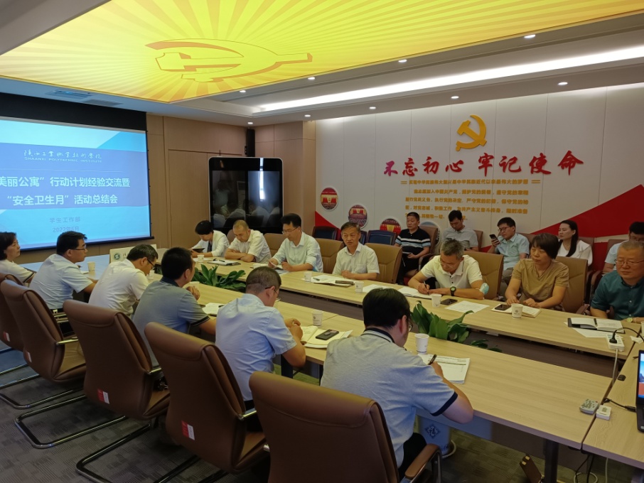 最后,党委副书记贺天柱进行了总结。他表示“美丽公寓”行动计划实施以来,各二级学院采取了一系列切实可行的措施,效果明显。同时,也存在一些问题和不足。希望各二级学院进一步提高认识、落实责任,系统思维、抓住重点,加强宣传、广泛动员,将认识转化为行动,继续推进“美丽公寓”行动计划。