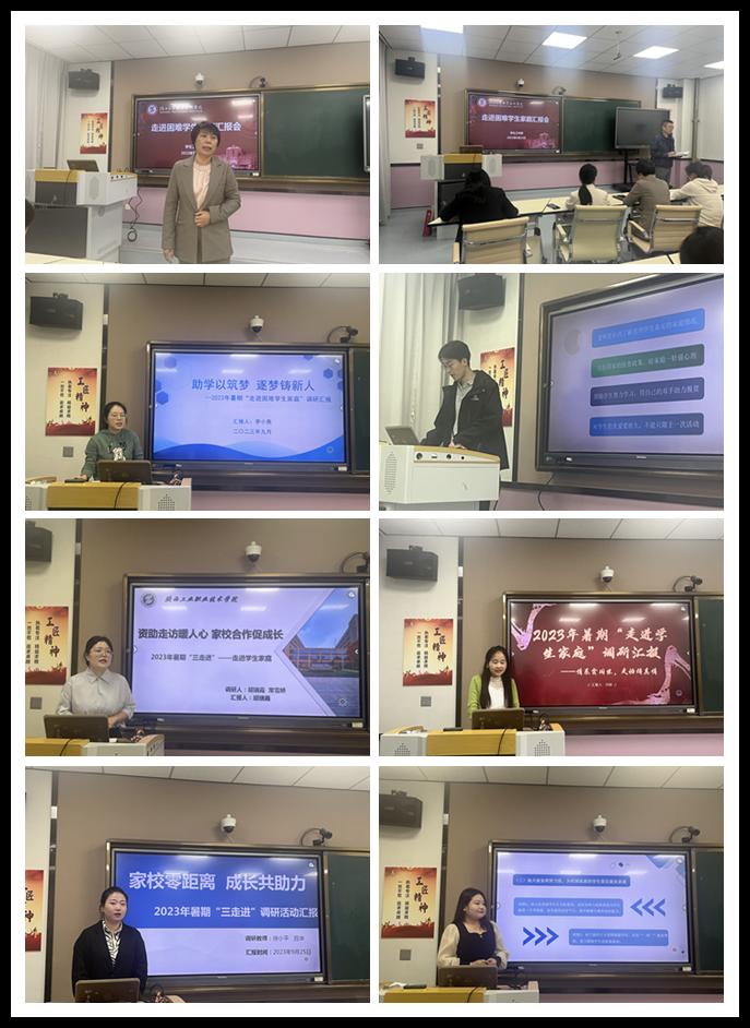 9月25日,学生工作部在崇文楼南B104智慧教室召开暑期走进困难学生家庭汇报会,马克思主义学院、团委、学生处相关老师担任评委,各二级学院学工办主任、暑期“走进困难学生家庭”带队教师参加了汇报会。