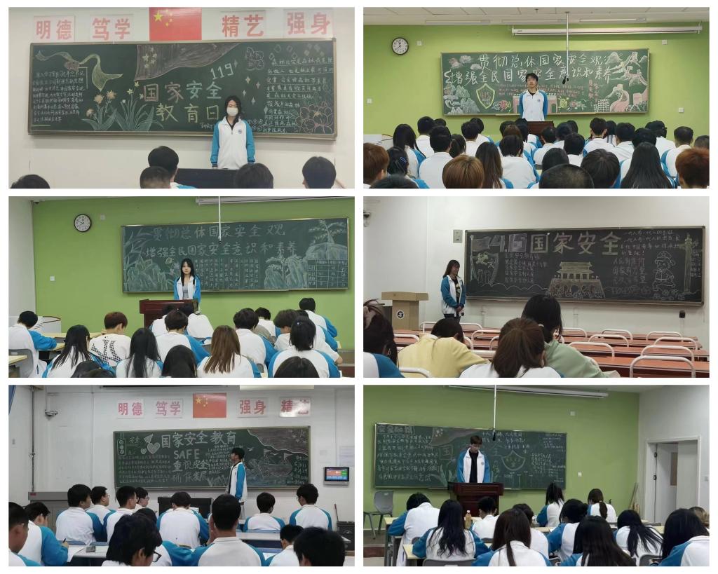 在主题团日活动中,首先,各班团支部集体在中国大学生在线官网,观看了《千万师生同上一堂国家安全教育课》,使同学们深刻认识到国家安全的重要性,增强了保密意识。接下来,组织同学们在中国普法微信公众号,参与全民国家安全教育日专项答题活动。最后围绕“作为当代大学生守护国家安全应该怎么做”,同学们依次上台分享交流了安全知识和安全案例评析等,要不断加强自身安全意识,不随意泄露个人信息和密码,不上不合法网站,以此增强个人网络安全能力。