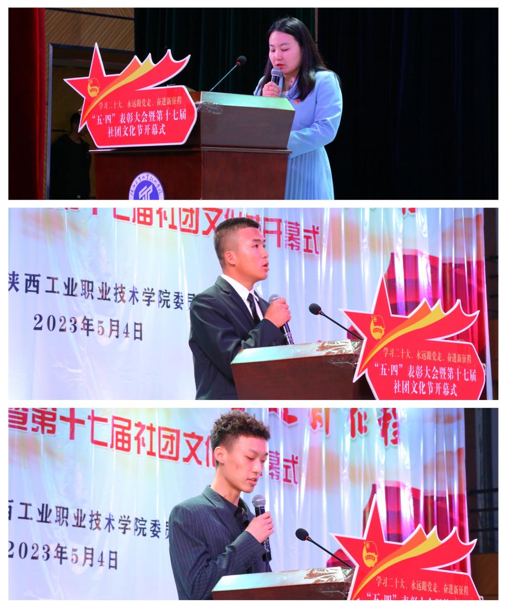 5月4日下午,我校“学习二十大 永远跟党走 奋进新征程”五·四表彰大会暨第十七届社团文化节开幕式于渭城校区明德堂举行,同时在经开校区在图文信息(二)设立分会场。党委副书记贺天柱出席,党委组织部、宣传部、学工部、马克思主义学院、就业处、校团委等部门相关负责同志,各二级学院党总支书记、副书记,团总支书记以及师生代表参加了现场会议,万余名师生通过线上直播形式参与了这场青春盛会。会议由团委书记赵双军主持。