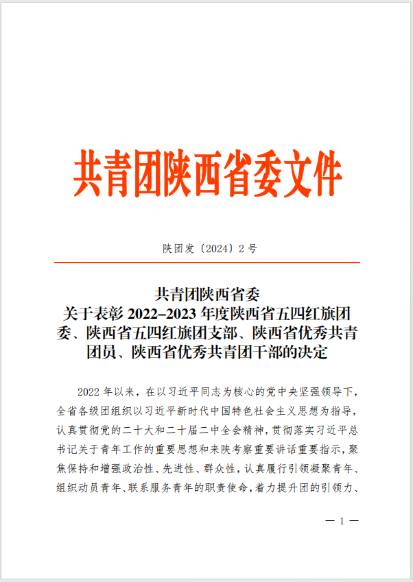 我校在2022-2023年度陕西省“两红两优”评选中荣获表彰