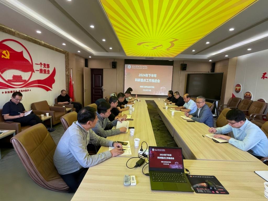 最后,梅创社副校长强调,科研工作是衡量学校发展水平的重要标尺,更是学校升办职教本科、进行“新双高”攻坚的关键支撑,各二级学院(部)务必站在全局战略的高度,牢固树立科研强校的意识,切实增强科研先行的紧迫感、责任感和使命感。结合学校2024年横向技术服务、知识产权及科技成果转化工作的完成情况,他提出了三点要求:一是要坚持科研和教学并重。要坚持以科研为基础,全面规划学科与专业建设,持续、深入地开展有组织、有规划的科研工作;二是科研工作重在日常。各二级学院(部)要强化教师科研理念的更新,高度重视科研平台的建设,充分发挥博士等高层次人才的科研引领作用,全力释放科研潜力,推动科研成果的转化和应用;三是要提升观念认知转变。各二级学院(部)尽快研究制定推进科研重点工作的实施细则,目标任务导向,将目标任务层层分解,更要加强落实和指导工作,确保各项任务能够高效完成。