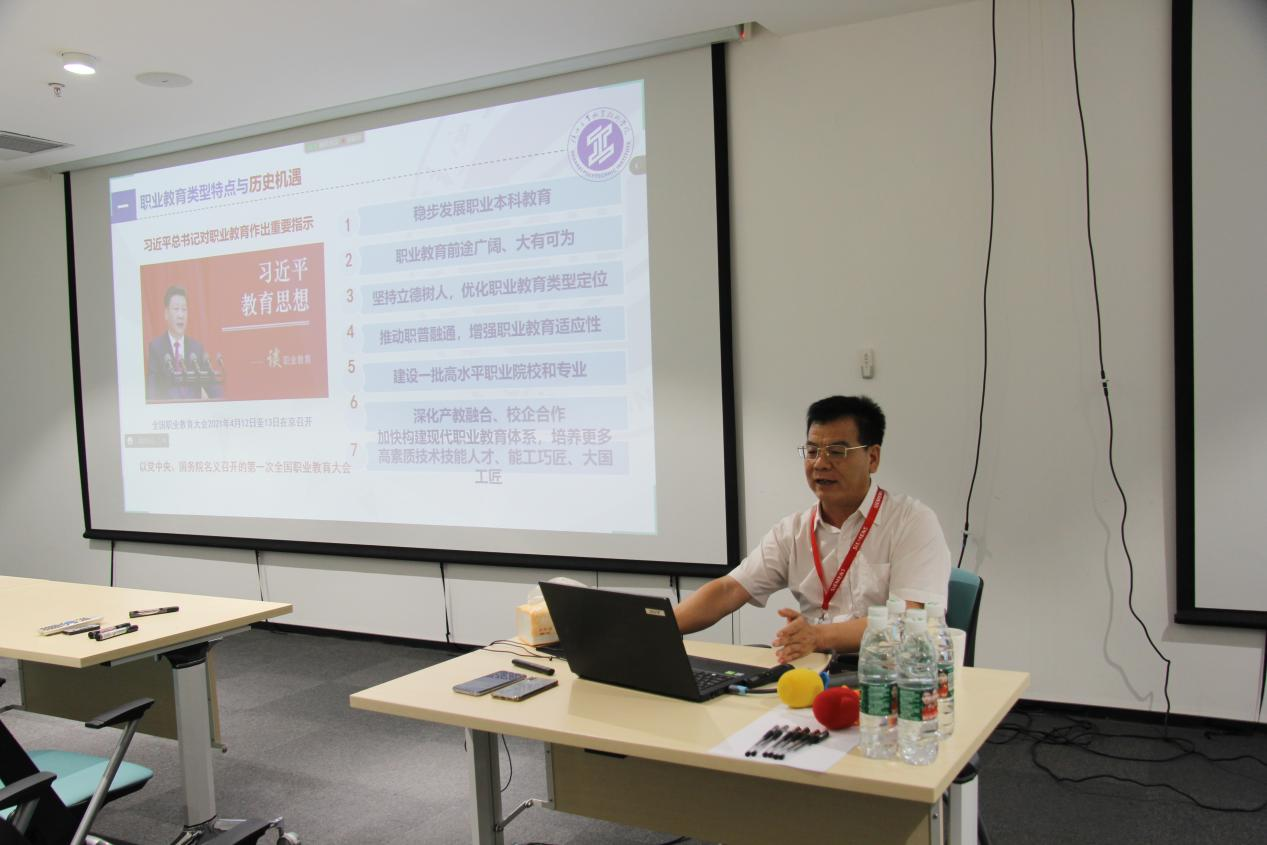 校长刘永亮受邀作了题为《职业院校高质量发展的思考与探索》的专题报告,主要内容包含职业教育类型特点与历史机遇、职业院校管理理念与现实思考、职业院校管理重点与核心要素以及职业院校高质量发展实践探索等四个方面。刘校长的报告内涵丰富,学员深受启发。
