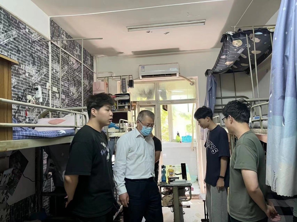 走访过程中,韩伟书记对同学们就疫情管理期间提出了明确的要求:一是要心存敬畏之心,严格遵守学校规章制度,严禁翻院墙、点外卖、夜不归宿等违背疫情防控的行为再次出现,筑牢疫情“防控网”;二是面对网络舆情,要明辨是非、谨言慎行,不信谣、不传谣、不造谣,筑牢思想防线;三是要求学生要逐步提高自理、自立的能力,叮嘱新生们要尽快调整作息,积极调整心态,尽快进入学习状态。