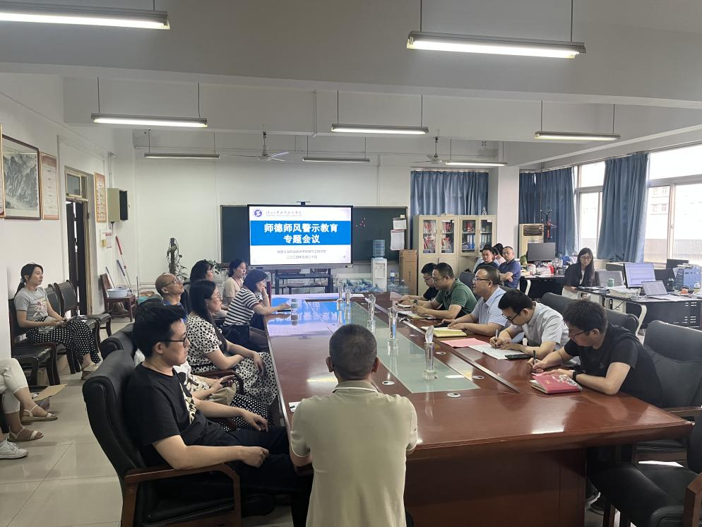 会上,电气工程学院副院长董佳辉领学了《新时代高校教师职业行为十项准则》文件,强调了推进师风师德建设的重要性。教学办主任张维、学工办主任赵松分别对教育部公开曝光的35起违反高校教师职业行为十项准则典型案例进行了通报。