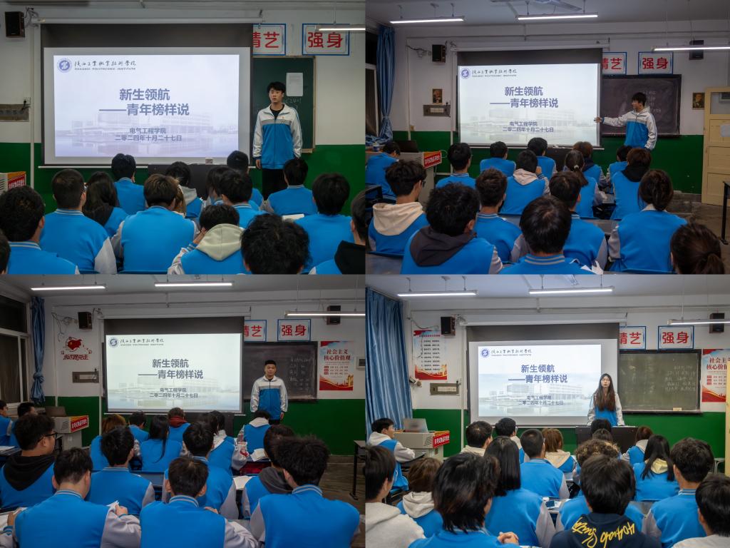 为了激励同学们树立远大理想,2024年10月27日晚,电气学院组织全体大一班级开展“新生领航——青春榜样说”主题班会活动。此次活动旨在通过榜样的力量,引导新生们明确人生目标,树立远大理想,锤炼过硬本领。