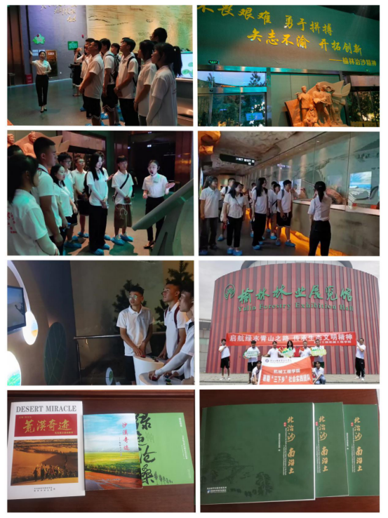 实践团成员一边听着讲解一边仔细参观了五个专题馆,其中建设厅向大家讲述了榆林治沙造林建设美丽榆林的历史以及英雄人物,沙漠厅介绍了世界八大沙漠的特点以及存在沙漠里的植物生物种类,生物厅展示了榆林有史以来的各种动物以及植物昆虫,产业厅介绍了作为榆林主要产业的能源产业,以及府谷大枣、米脂小米、沙棘等特产,还有4D影院,带大家宛如身临其境的看遍榆林的山川林地。随后同学们进行了一场激烈的解题抢答游戏,学习掌握了不少的治沙造林的知识。此行,学院还与榆林沙地森林公园管理中心达成了实践基地意向,希望能够让更多的同学们到此了解治沙精神。
