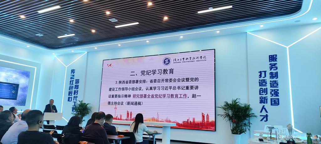 5月6日下午,机械工程学院党总支在先进制造技术工程中心展厅召开党纪学习教育部署推进会,全体党员参会,会议由总支书记侯涛同志主持。