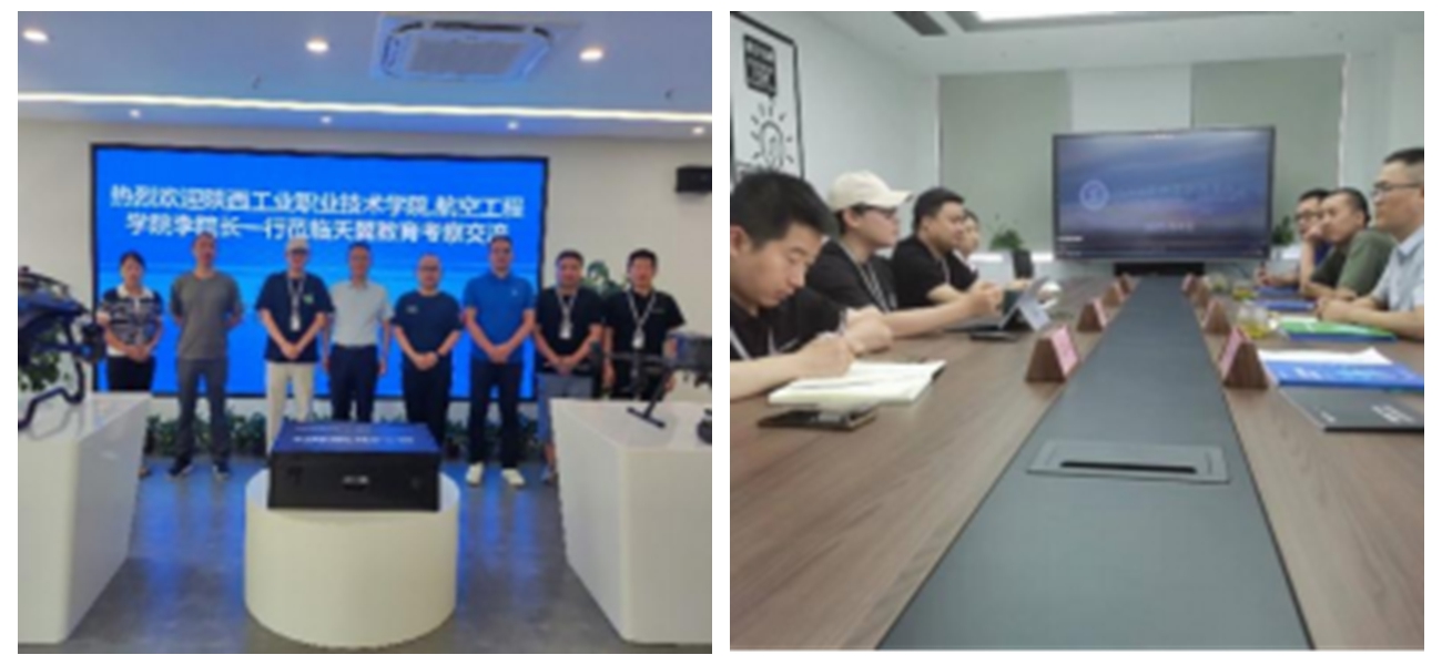 7月21日,航空工程学院院长李晓鹏、飞机机电设备维修教研室主任唐忠林、教师南亨、马鸿一行四人赴西安天翼智控教育科技有限公司(以下简称西安天翼智控)、天翼无人机飞行学院调研,并就专业建设、人才培养、实训科研、校企合作等方面进行了交流座谈,西安天翼智控总经理邵靖宇、销售总监苟富文、技术总监黎育果、业务部门经理马妮娜参与了座谈。