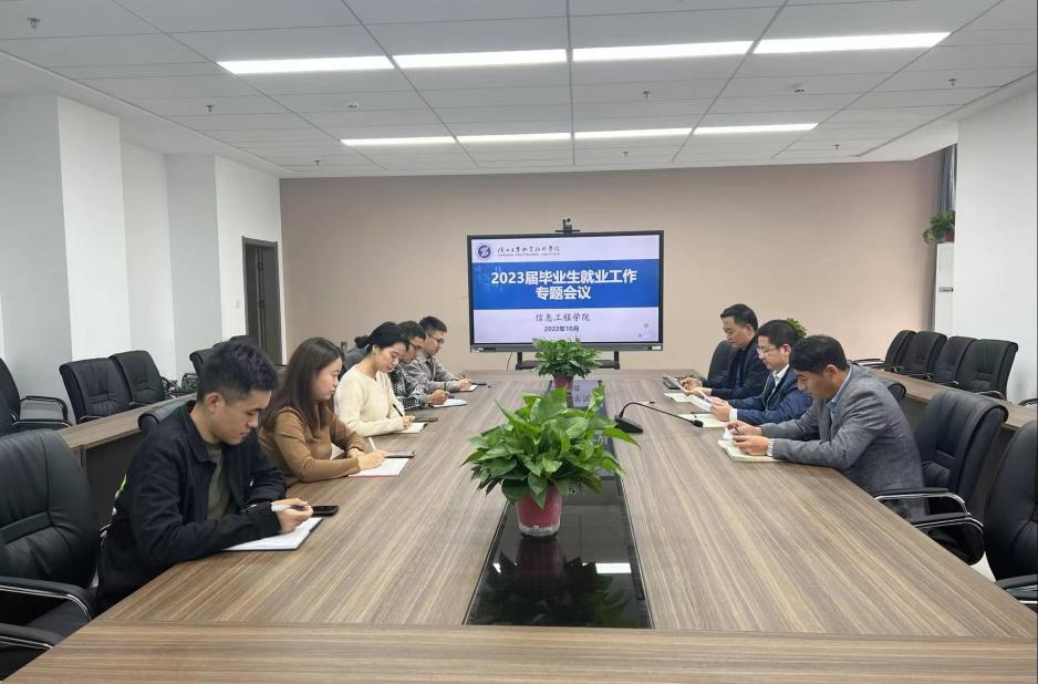 为贯彻落实教育厅关于毕业生就业相关文件精神,帮助2023届毕业生明确就业形势,把握就业机遇,推动信息学院毕业生就业工作的高质量开展。10月26日下午,信息学院在经开校区崇礼楼c座801召开2023届毕业生就业工作专题会议。信息学院党总支书记闫军、副院长白国政、学工办主任穆昌及全体大三辅导员参加了会议,会议由学工办主任穆昌主持。