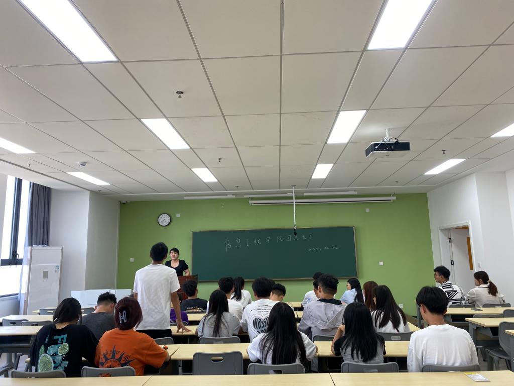 为加强对2023级新生迎新工作的组织与协调,确保新生报到、入学教育、事务办理、安全维稳等各项工作有序、简捷、高效进行,9月3日,信息学院学工办在崇理C406组织开展了新生班级学生助理培训会。2023级本科班班主任武丽丽、年级辅导员李丹参加了会议,会议由年级辅导员薛昊主持。