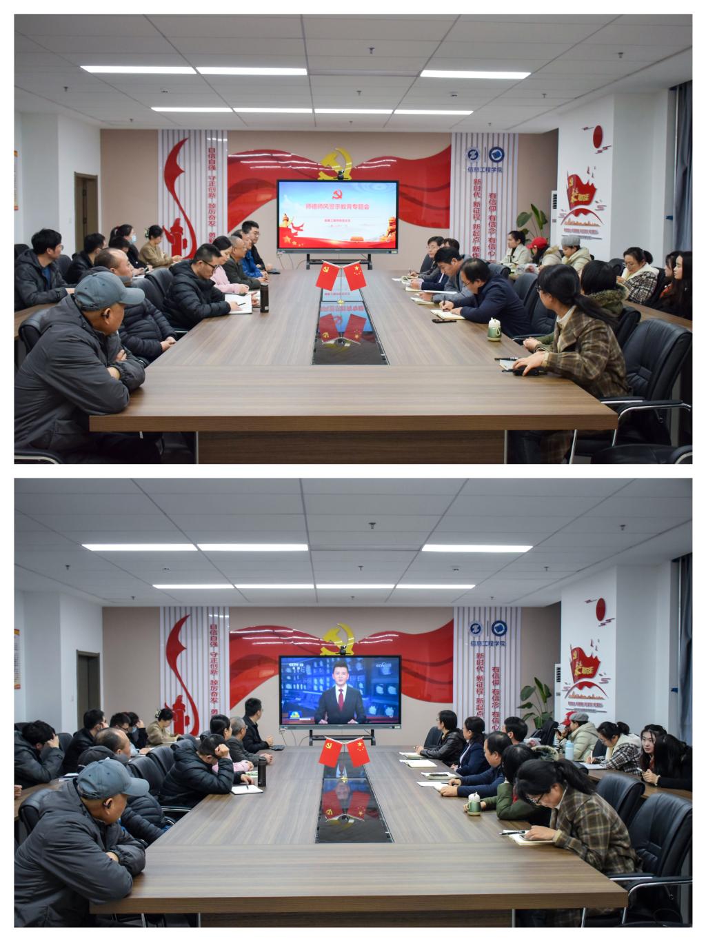 根据学校《关于开展师德师风警示教育活动暨学习第十三批违反教师职业行为十项准则典型案例的通知》文件精神,为进一步强化师德师风建设,打造党和人民满意的高素质教师队伍,11月15日,信息工程学院在崇理楼C801会议室开展师德师风警示教育专题活动。全体教师参加活动。活动由信息学院党总支副书记郭新玲主持。