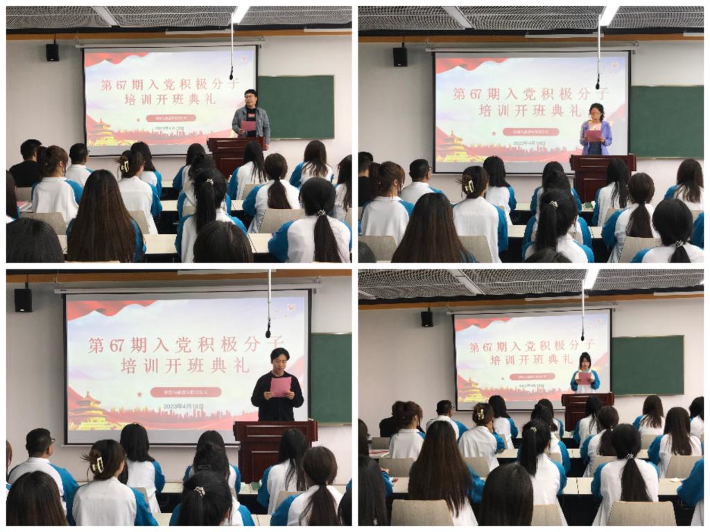 按照《关于举办2023年上半年入党积极分子培训班的通知》的文件精神,为学习贯彻习近平新时代中国特色社会主义思想和党的二十大精神,深入贯彻落实新时代党的建设总要求和新时代党的组织路线,进一步提高入党积极分子的教育培训质量。4月18日,财经与旅游学院党总支在经开校区崇理E202教室举行了第67期入党积极分子培训开班典礼。学院党总支副书记程建卫、学生第一党支部党员代表、第67期入党积极分子参加本次开班典礼。