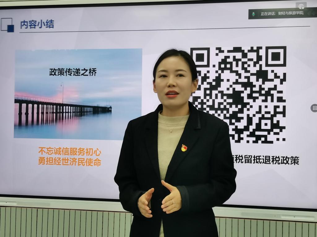 为深入学习贯彻落实习近平新时代中国特色社会主义思想,落实立德树人根本任务,充分发挥教师队伍“主力军”、课程建设“主战场”、课堂教学“主渠道”作用,由学校课程思政教学研究中心主办、财经与旅游学院承办的第十一期课程思政示范课教学观摩活动,于12月27日在经开校区崇理楼E304举行,观摩活动采用线上、线下相结合的方式进行。学校党委副书记贺天柱、教务处思政科科长张敏和财经与旅游学院全体教师参加了本次活动。活动由财经与旅游学院院长何奇彦主持。