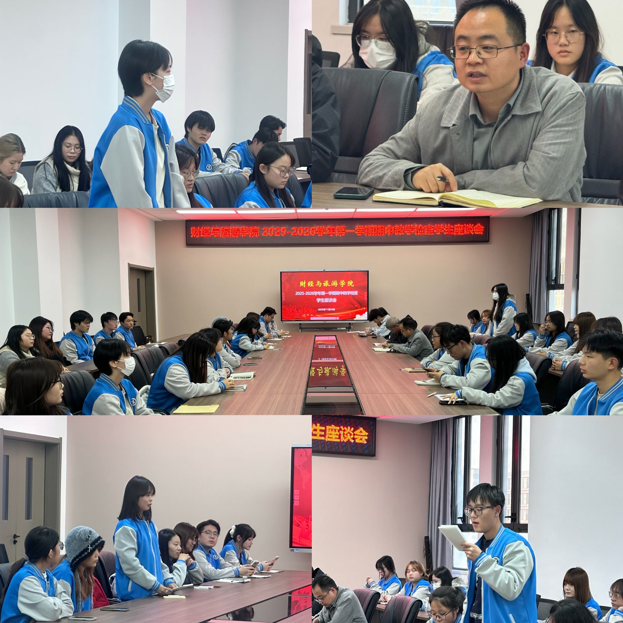 为全面掌握教学运行实况,畅通师生沟通渠道,持续提升教育教学质量,近日,财经与旅游学院组织召开 2025-2026 学年第一学期期中教学检查学生座谈会。财经与旅游学院学工办主任李友治2025级、2024年级辅导员及三个年级学生代表60余人参加了会议,座谈会由学工办主任李友治主持。