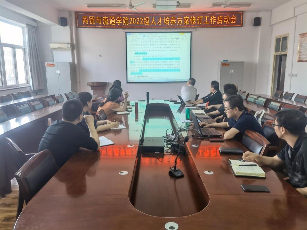 5月20日下午,商贸与流通学院举行2022级人才培养方案修订启动会,商贸学院副院长张光、各教研室主任、专业带头人参会,会议由实训中心主任杨涛主持。